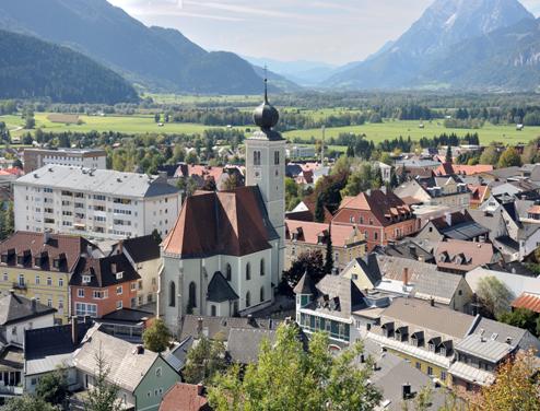 AUSTRIA LIEZEN – VEDERE PANORAMA – BISERICA KATH PFARRKIRCHE. Locul unde